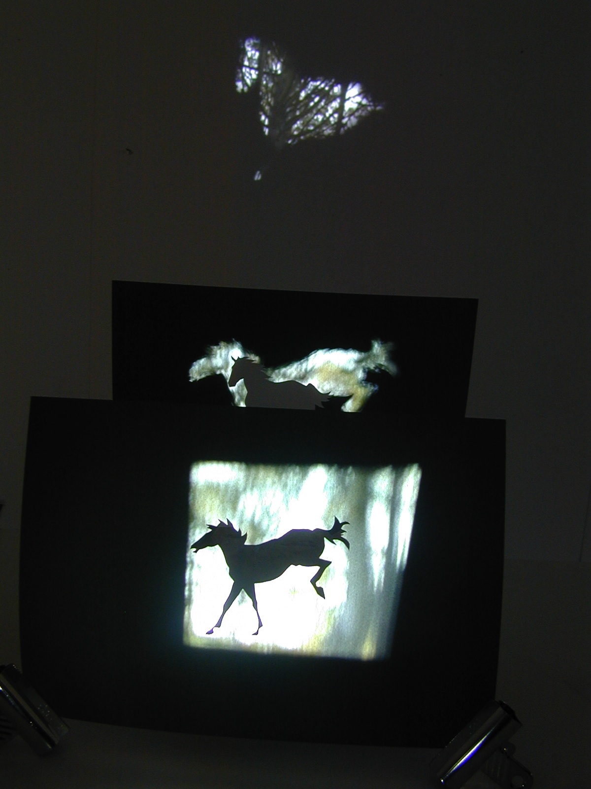 Movieis a constellation: a film is projected on a gallery wall, while close to the opposite wall a fan blows from the floor, and between them hang two large curtains, that ripple like sails in the fan’s wind. Movieis maybe about movement, my movement as I pass through and around, turning from one element to another, and the interacting movement of physical substance: the air from the fan animating the fabrics, the air on my body as I pass through the space…
