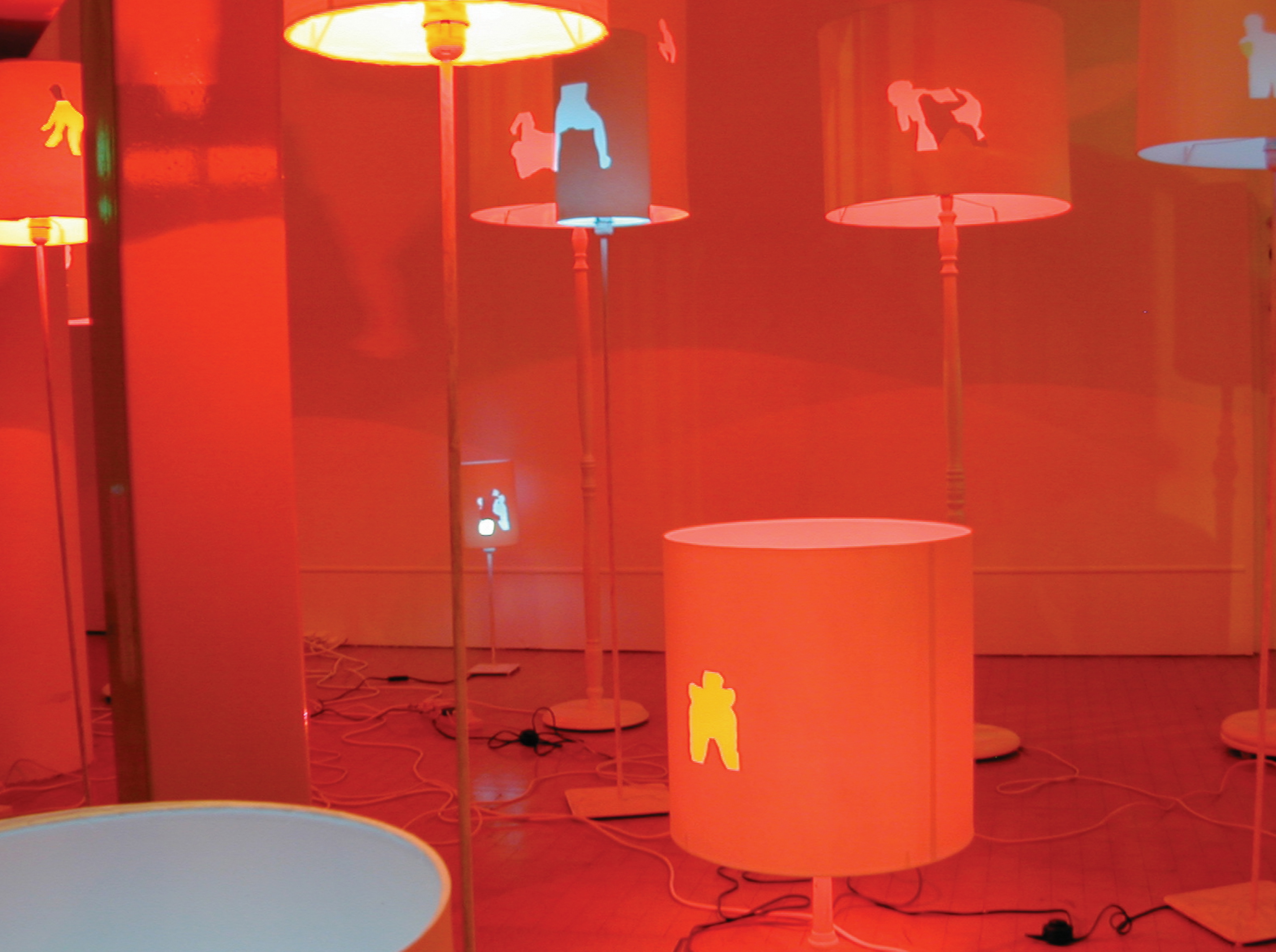 Are those violets or pansies? Is there a wild meadow? The sound of the film is low, mixed with the noise that floats in from elsewhere in the gallery. There are clicks, silences, the low whir of traffic as the film cuts from flowers to car lights, city lights, out of focus blurs and blobs. And now there is what seems to be a white sun on a faint blue sky, but perhaps it is a flower, drifting out of view. I turn back again to the fan, and think that the darting silver lattice blown out by its whirr, is the light of the film made material, swimming towards the wall.